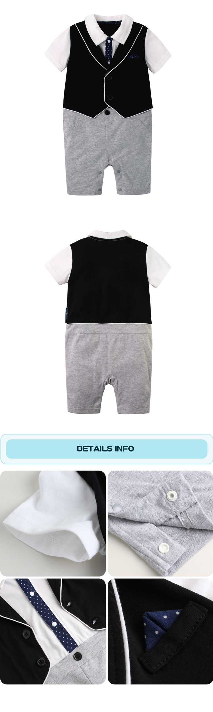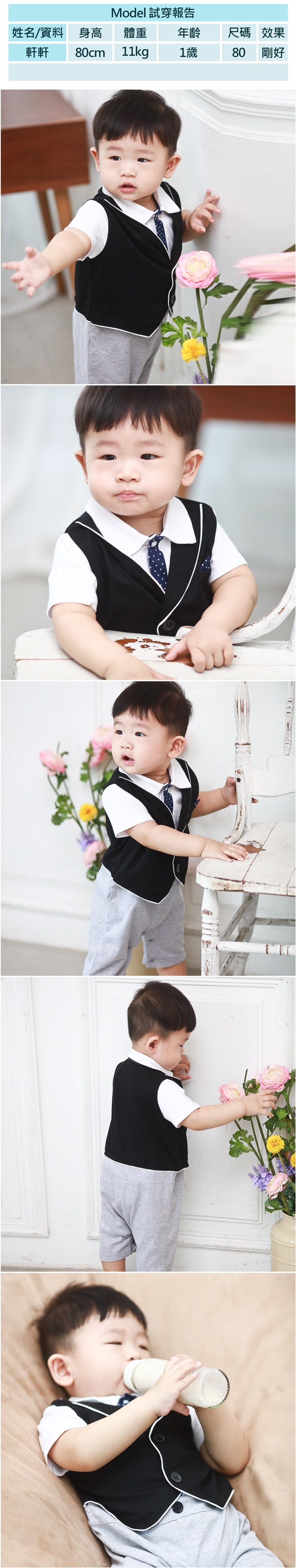 Augelute Baby 短袖紳士背心假三件連身衣 60356